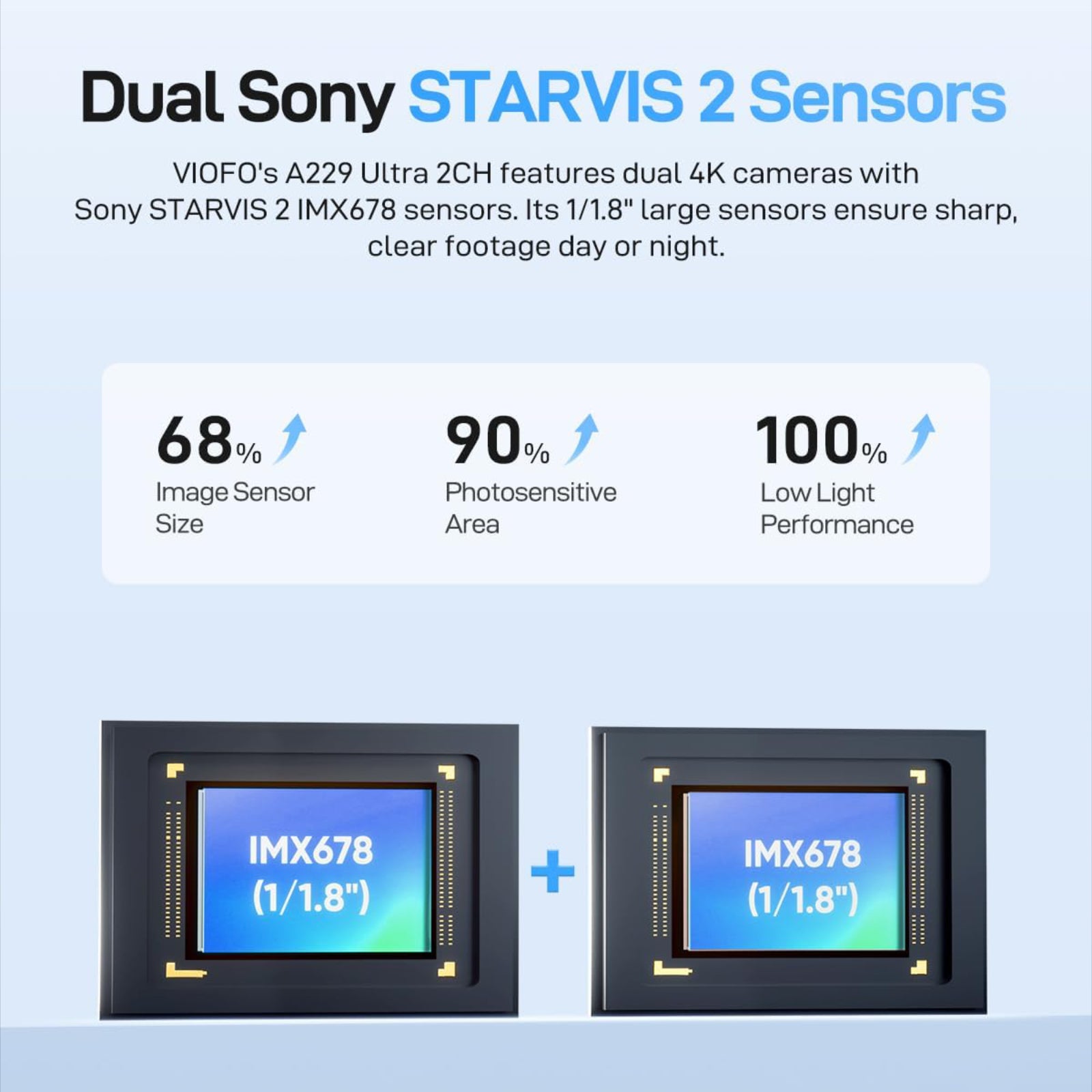 With two Sony STARVIS 2 sensors, the A229 Ultra offers a wider dynamic range, better low-light performance, and significantly reduces noise and motion blur for clearer videos from every perspective.