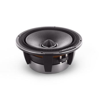 All speakers in this set (as well as the HDZ-110 Alpine Status subwoofer) use backed carbon composite cones to achieve a fully unified timbre identity – resulting in excellent harmonics. Carbon is very lightweight and stiff, resulting in high dynamics and low distortion. Backed carbon composite technology is also used in race-car monocoques for its light weight and high crash resistance.