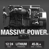 Introducing our most powerful lithium jump starters yet. Designed for the largest, most challenging engine starts ever. With over 6250-amps of starting power, it can jump start gasoline and diesel engines up to 45-liters. It jump starts almost every type of vehicle and equipment, including semi-trucks (up to class 8), motorhomes, coaches, buses, mining, agricultural, construction, and vocational equipment - 6, 8, 12, and 16 cylinder - and more.