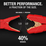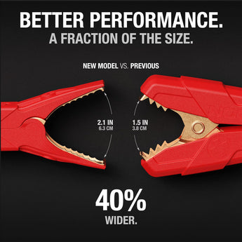 Optimized to fit a wider range of applications more securely, to maximize conductivity during jump starts.