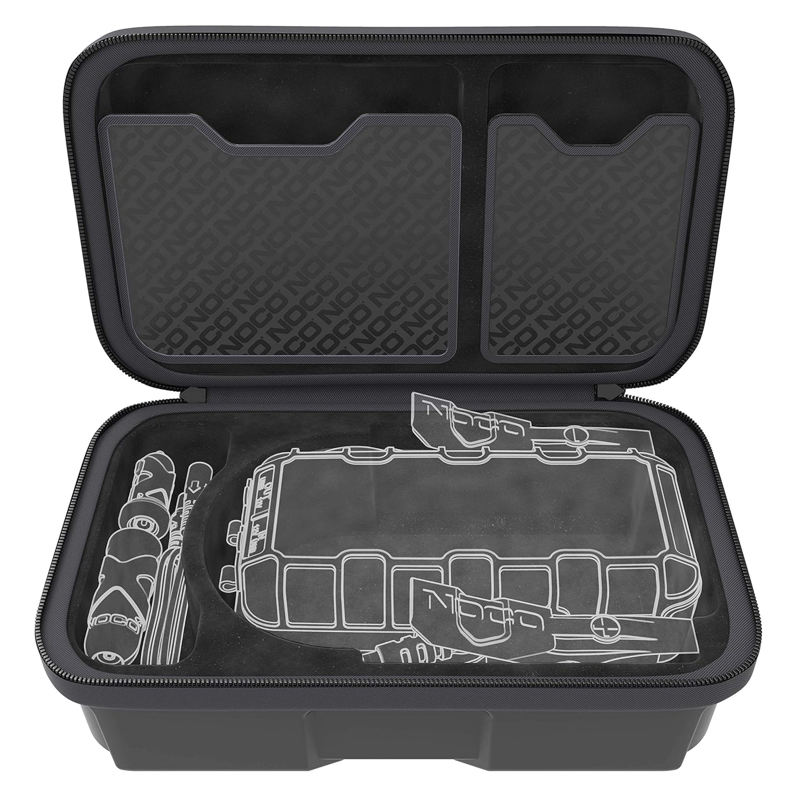 The lightweight, durable, and rugged GBC014 EVA Protective Case has a semi-rigid custom exterior with zipper closures and a reinforced handle. The rubberized EVA exterior offers protection from moisture, impact, dust, and other environmental factors, while the molded interior perfectly fits, stores, and protects its corresponding NOCO Boost UltraSafe jump starter— the GB70 Boost HD (sold separately).