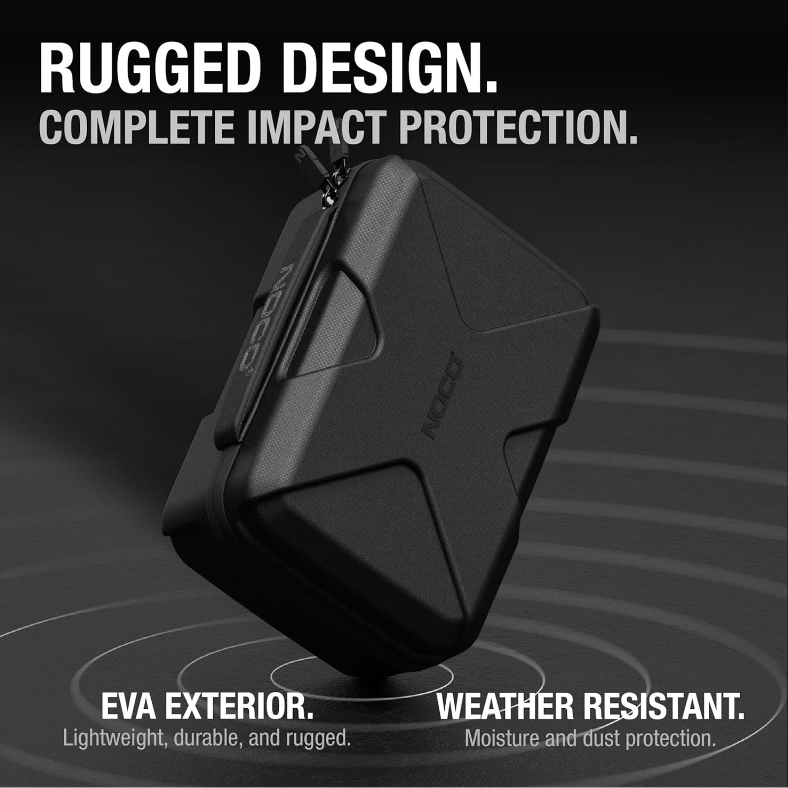 GBC103 is made from a rugged, durable, and lightweight EVA material. This crush-resistant material protects BOOST X jump starters against impacts and drops, as well as dust and splashes.