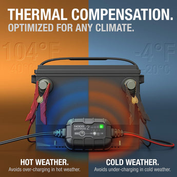 Introducing the all-new GENIUS2, one of our most powerful, highest-performing, energy-efficient, and compact chargers yet. The GENIUS2 is a 6-volt and 12-volt battery charger, battery maintainer, and battery desulfator rated at 2-amps for lead-acid automotive, marine, and deep-cycle batteries, including flooded, gel, AGM, and maintenance-free, plus lithium-ion batteries.