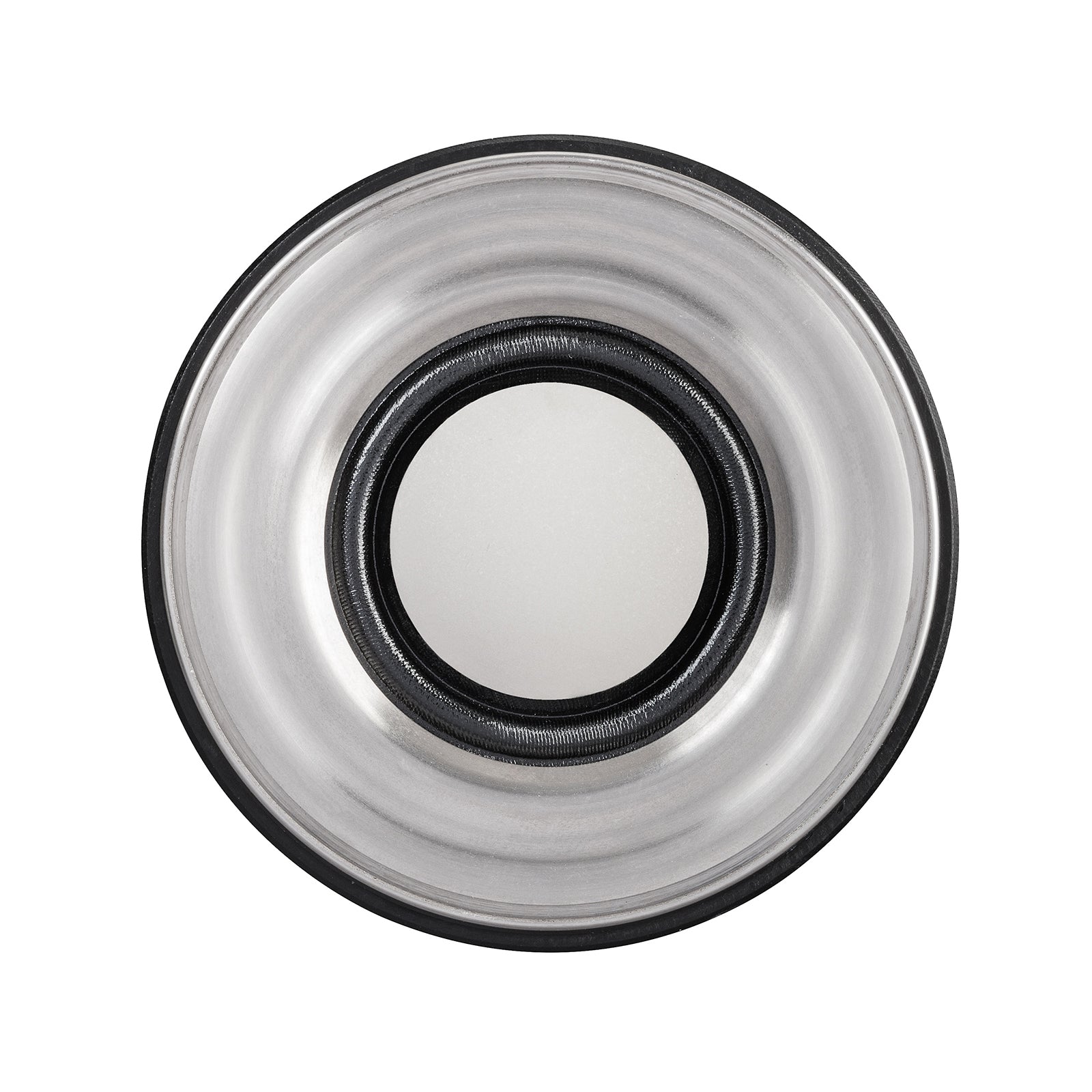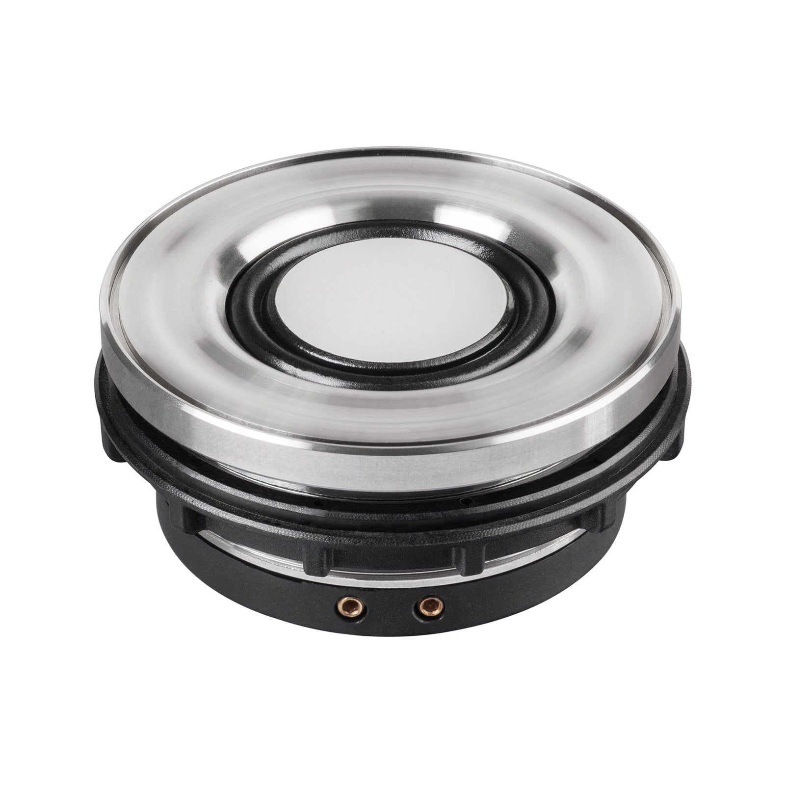 The pure and aesthetic design, made from solid stainless steel does not solely look noble but ensures perfect heat dissipation as well. The mounting ring with fine thread warrants a seamless and decent integration into the car's interior whereas the 12 times drilled neodymium magnet is optimized for highest linear magnetic flux. Finally the recessed, 24-carat gold plated terminal reduces contact resistances to almost zero and the rigid grille perfectly protects the sensitive diaphragm.