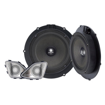 This Alpine Adventure Audio system for the Volkswagen T6 perfectly unites function with form: enjoy audiophile grade sound quality, while the beautiful photo-etched stainless-steel tweeter grills simply look stunning in your A-pillars.