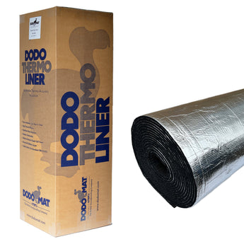 Dodo Thermo Liner is our classic best selling 6mm sound and heat insulation material for a quieter warmer, van, camper or motorhome. Thermo Liner is a high grade foil lined nitrile closed cell foam and is ideal for use on the van sides, floor, roof etc.