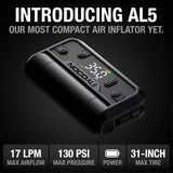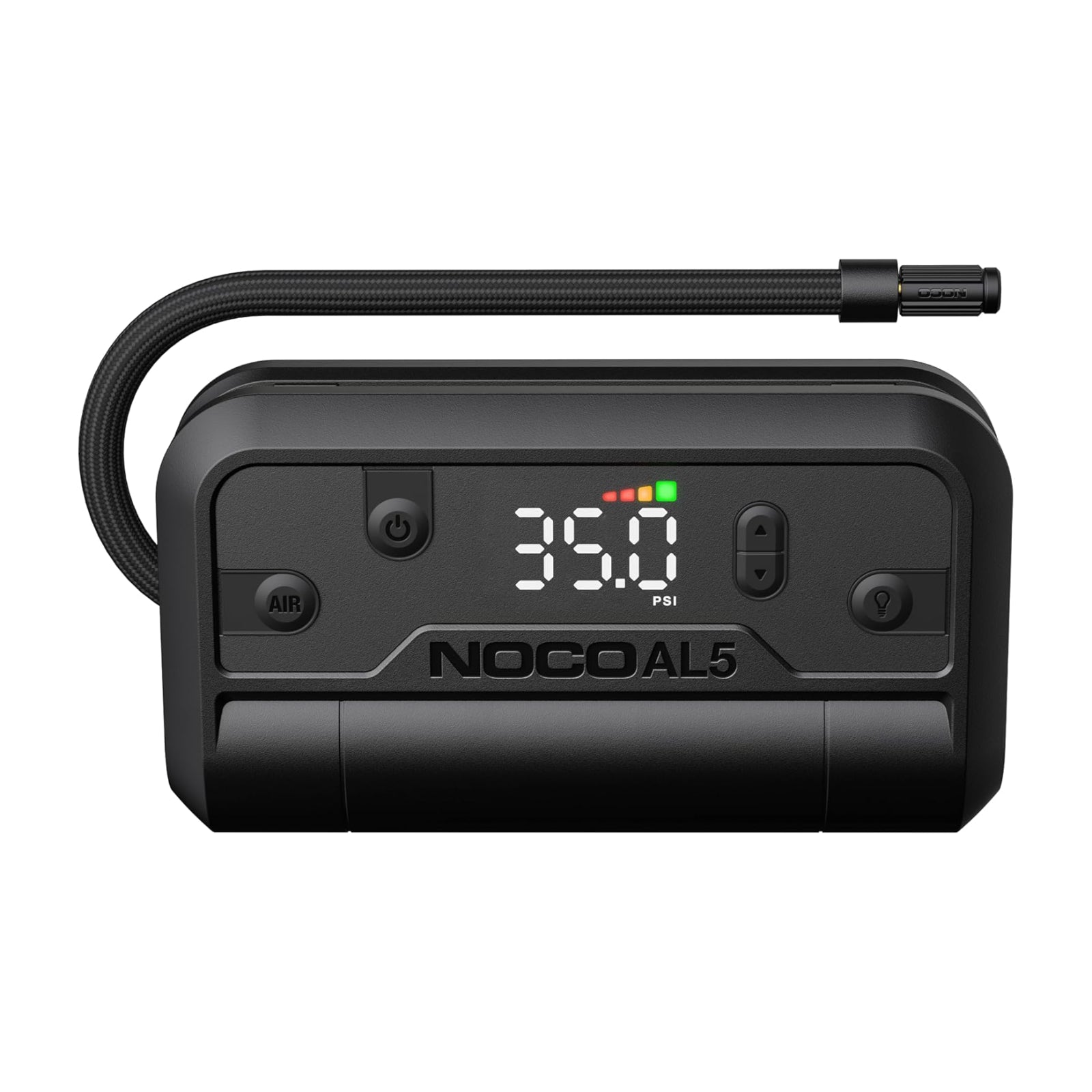Introducing NOCO AL5 a 12-volt, 5-amp portable air compressor with a 90-watt motor rated at a maximum pressure of 130 PSI. AL5 is the next generation of portable air compressors, utilizing advanced motor and airflow design in an unbelievably compact form with uncompromising performance, it runs longer, fills faster, and is infinitely better.