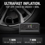 Experience the unparalleled speed and efficiency of a 90-watt motor seamlessly inflating tires from 0 to 40 PSI in an astonishingly swift 7 minutes at 17 LPM (Liters Per Minute). Or quickly top off (35-40 PSI) low tires in less than 1 minute