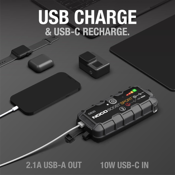 The GB20 is a portable lithium-ion battery jump starter pack that delivers 500-amps for jump starting a dead battery in seconds. Designed for a car, boat, motorcycle, RV and more with gas engines up to 4 liters. Our most advanced car battery charger jump starter ever. Featuring high-discharge lithium technology for safe operation in any climate. A rugged and water-resistant enclosure rated at IP65. A rubberized over-molded casing to prevent scratching or marring of surfaces. And an ultra-compact and lightweight design weighing just 2.4 pounds.