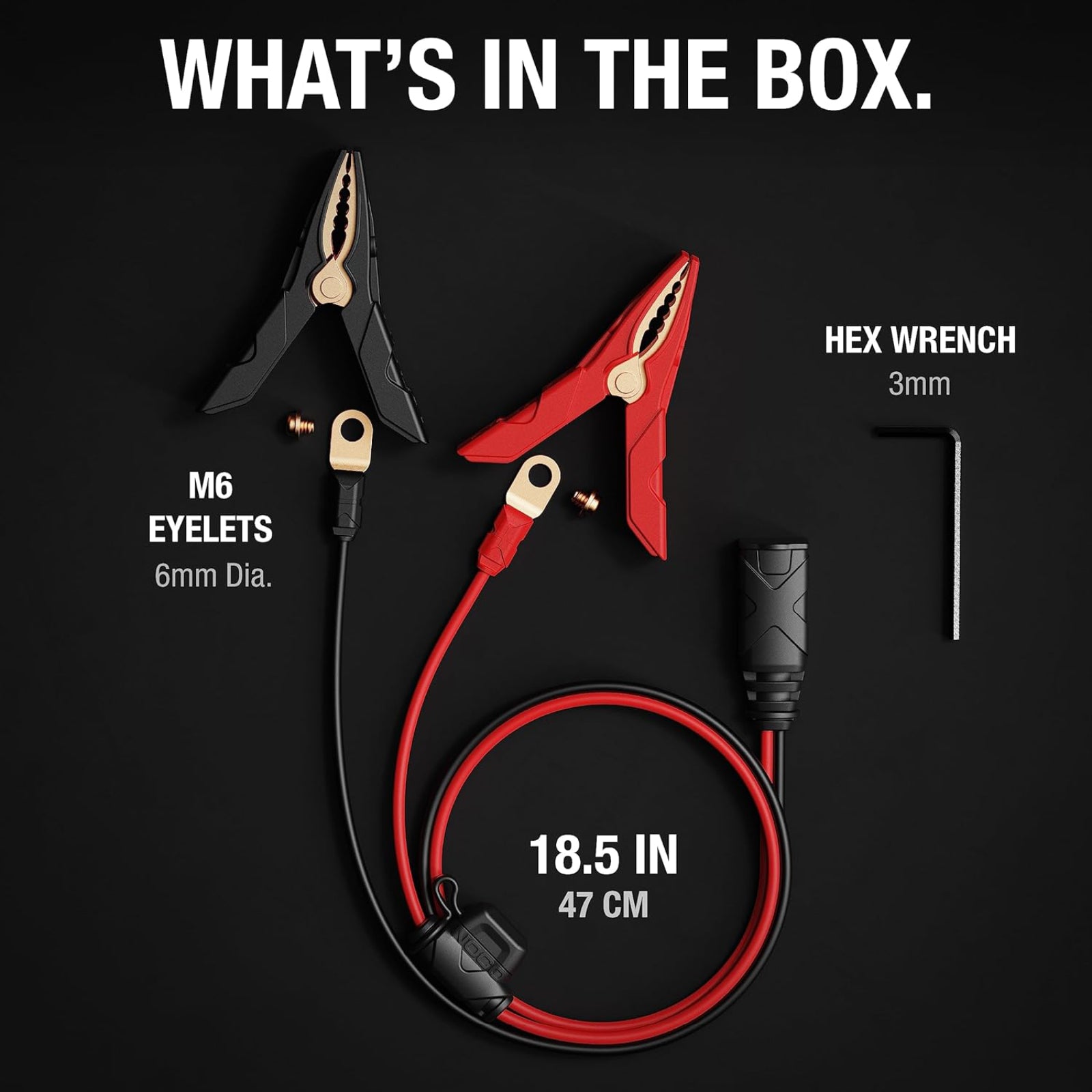 Leave GC001 hard-mounted to battery terminals using the built-in eyelet connectors and easily move NOCO Genius chargers between batteries.