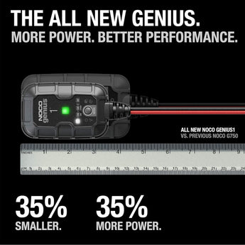 Introducing the all-new GENIUS1, one of our most powerful, highest-performing, energy-efficient, and compact chargers yet. The GENIUS1 is a 6-volt and 12-volt battery charger, battery maintainer, and battery desulfator rated at 1-amp for lead-acid automotive, marine, and deep-cycle batteries, including flooded, gel, AGM, and maintenance-free, plus lithium-ion batteries.